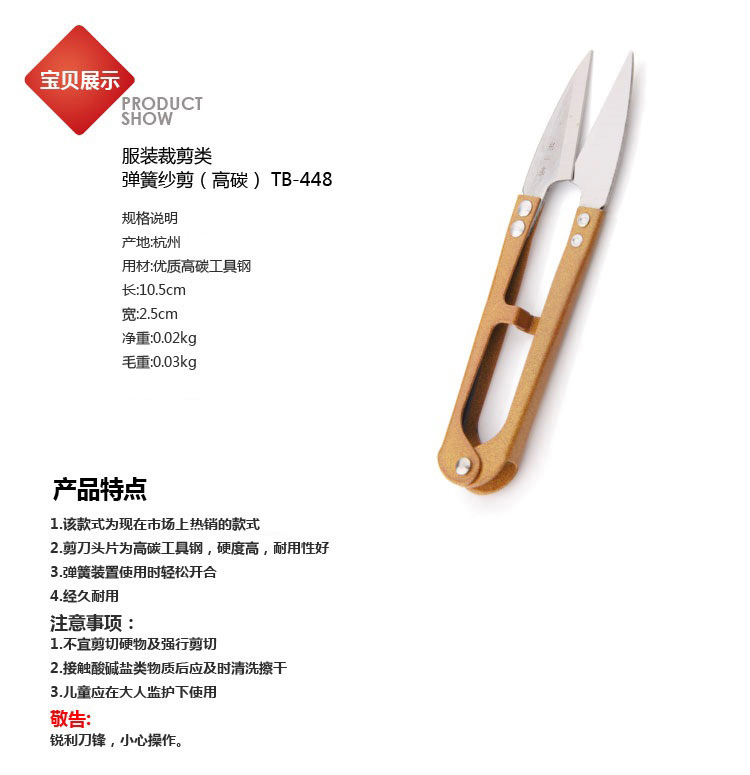 張小泉 TB-448 U型小剪刀/彈簧紗剪刀 72把/盒 720把/箱
