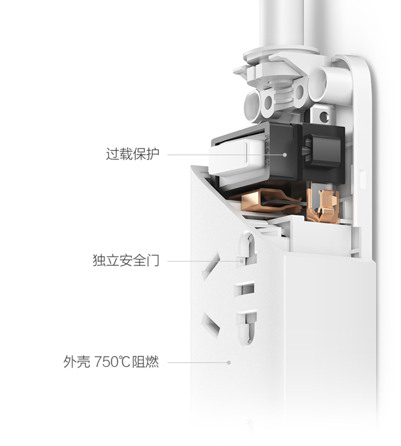 小米(MI) 3USB接口+3孔位 2A快充 插線板/插排/插座