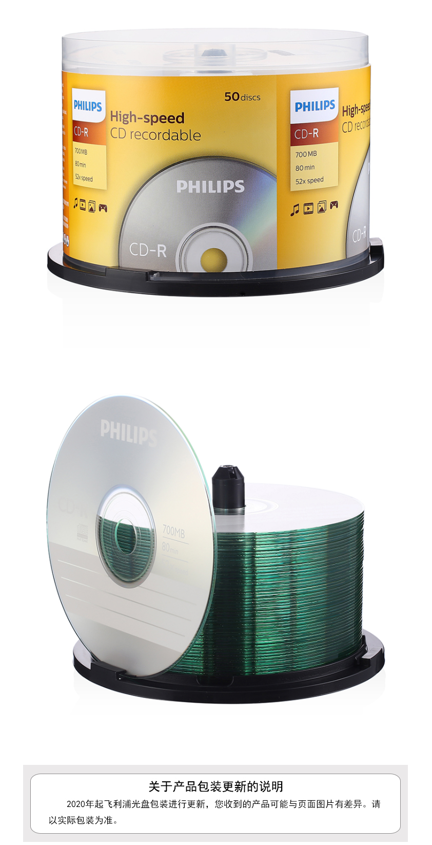 飛利浦(PHILIPS) CD-R光盤/刻錄盤 52速700M 桶裝50片