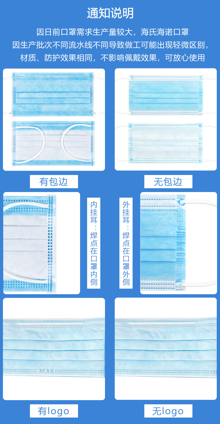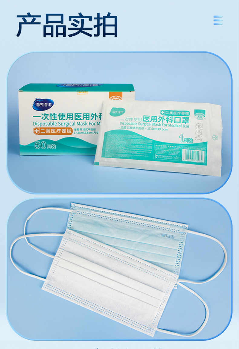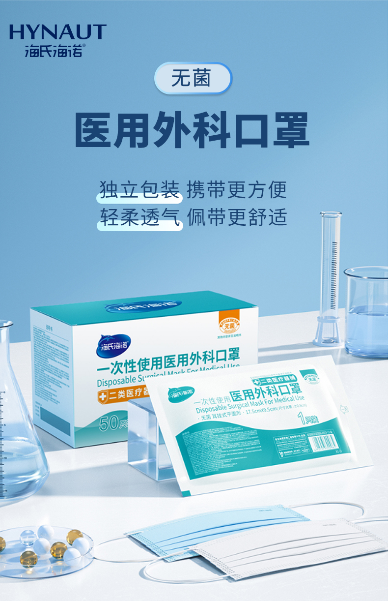海氏海諾 一次性醫(yī)用外科口罩(獨(dú)立包裝)50個(gè)/盒 無菌 40盒/箱