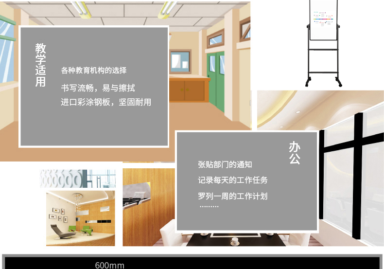 得力(deli) 7881 白板支架式豎式可移動(dòng)磁性白板60*90掛紙白板