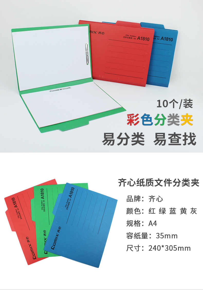 齊心(COMIX) A1810 易分類分類夾A4紙質(zhì)文件夾10個(gè)/包400個(gè)/箱(紅色) 10個(gè)/包 400個(gè)/箱 (紅色)