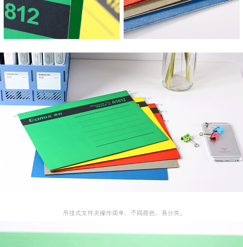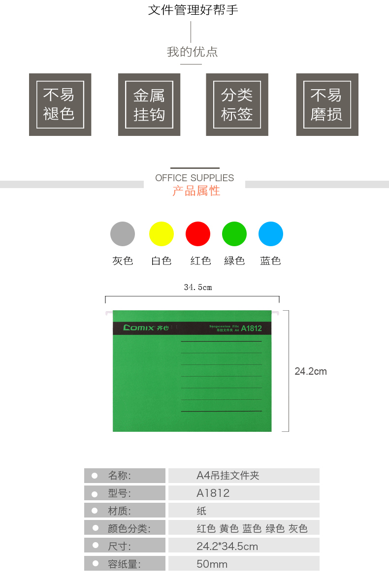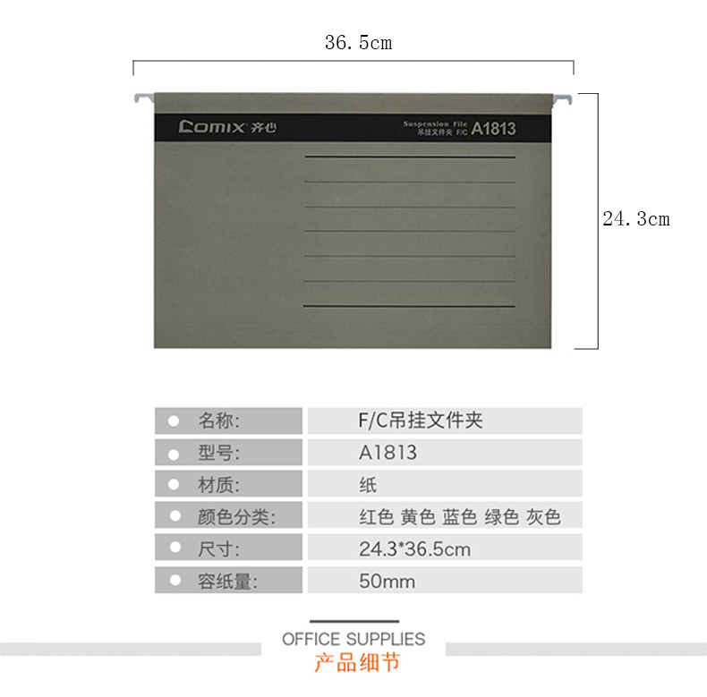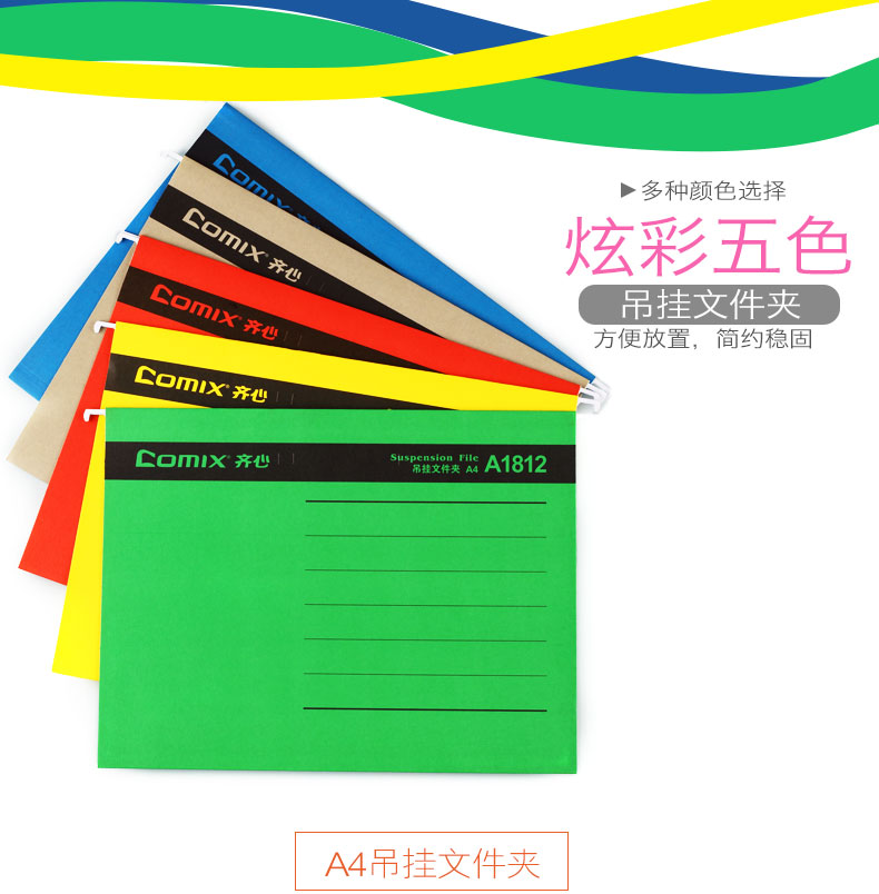 齊心(COMIX) A1812 吊掛快勞文件夾A4彩色紙質(zhì)(25個/盒)(綠色)