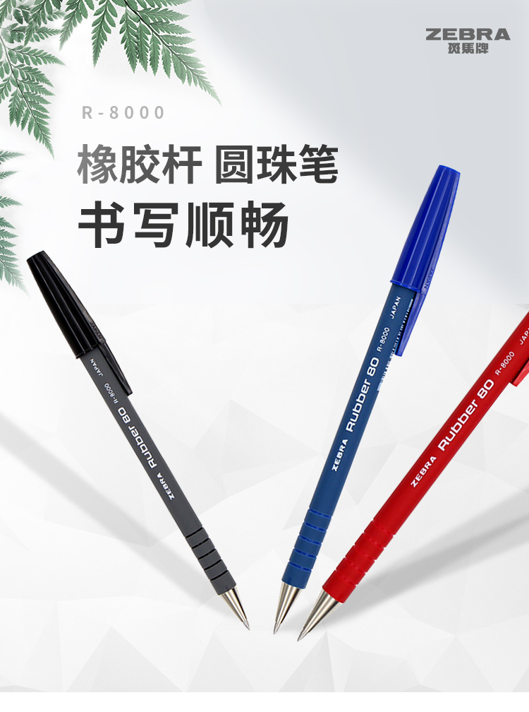 斑馬(ZEBRA) R-8000 橡膠桿圓珠筆原子筆0.7mm10支/盒(紅色) 10支/盒 (紅色)