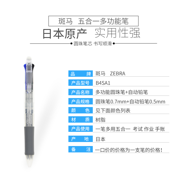 斑馬(ZEBRA) B4SA1 四色圓珠筆帶自動(dòng)鉛筆(四色圓珠筆+鉛筆)多功能多色筆