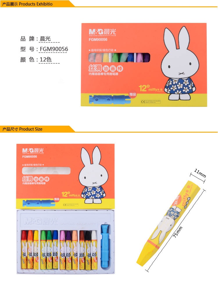 晨光(M&G) FGM90056 米菲卡通絲滑油畫棒蠟筆繪畫筆(12色/盒)不臟手