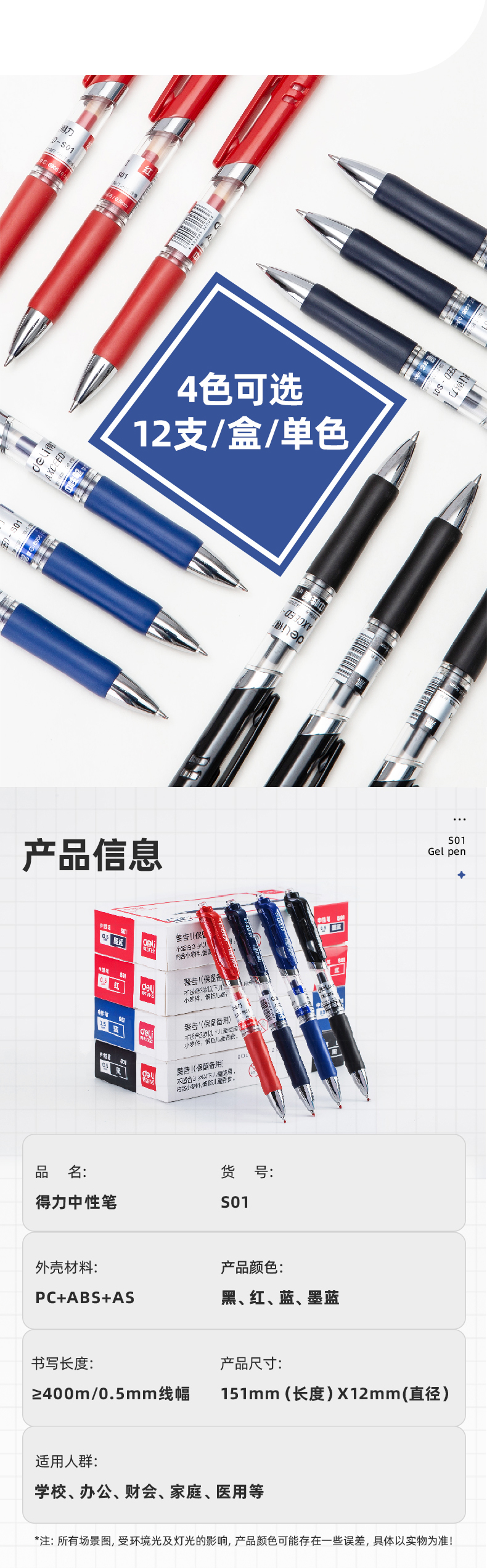 得力(deli) S01 0.5mm經(jīng)典辦公按動(dòng)子彈頭中性筆/水筆/簽字筆 12支/盒 144支/件 (墨藍(lán)色)