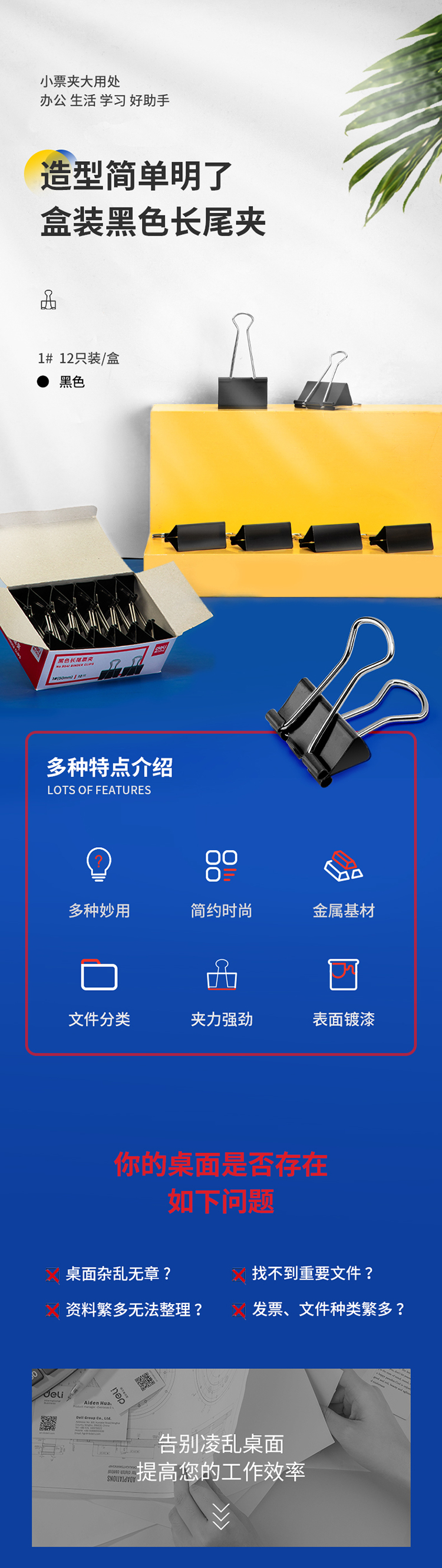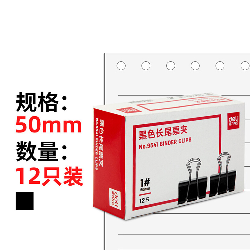 得力(deli) 9541 黑色金屬長(zhǎng)尾夾/票據(jù)夾/燕尾夾/鐵夾子1#50mm12只/盒裝60盒/箱