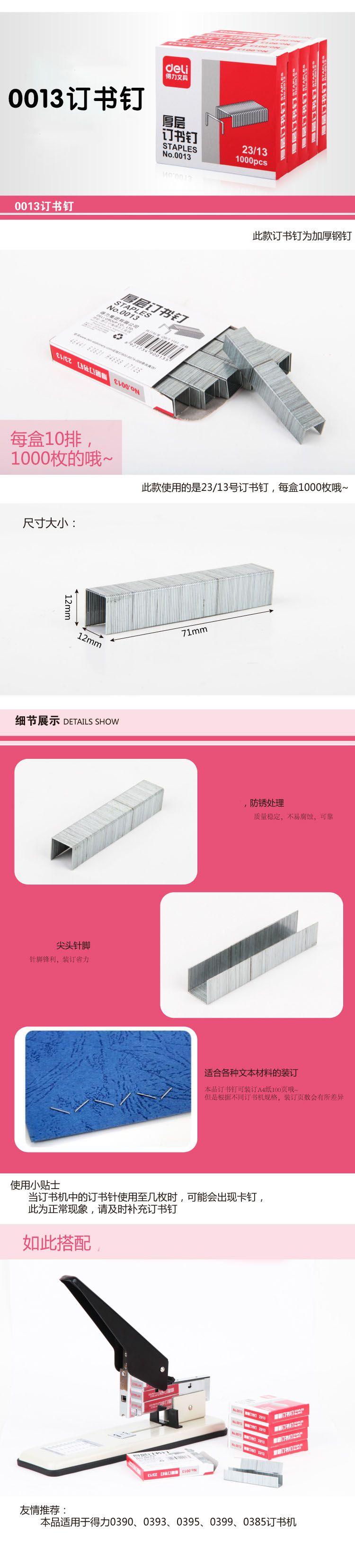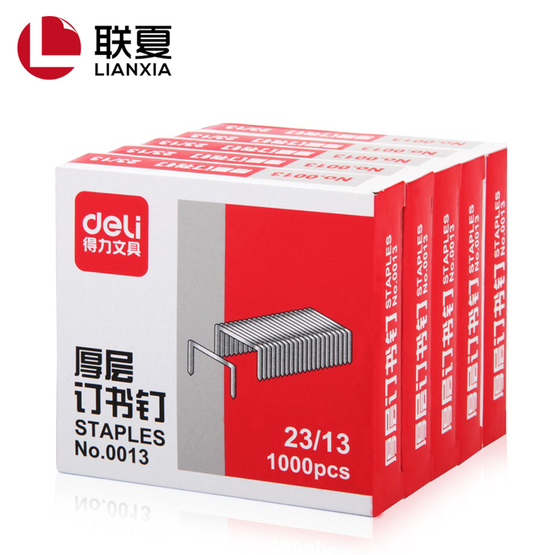 得力(deli) 0013 厚層釘書釘23/13(1000枚/盒)可釘80頁5盒/條200盒/箱