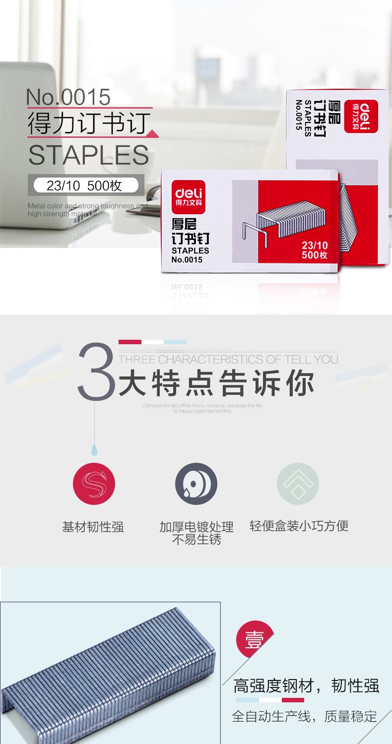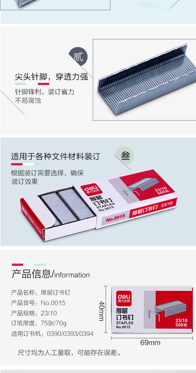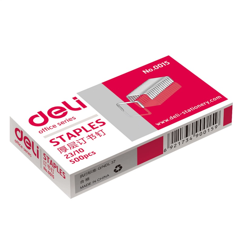 得力(deli) 0015 厚層訂書(shū)釘23/10(500枚/盒)可釘60頁(yè)10盒/條500盒/箱