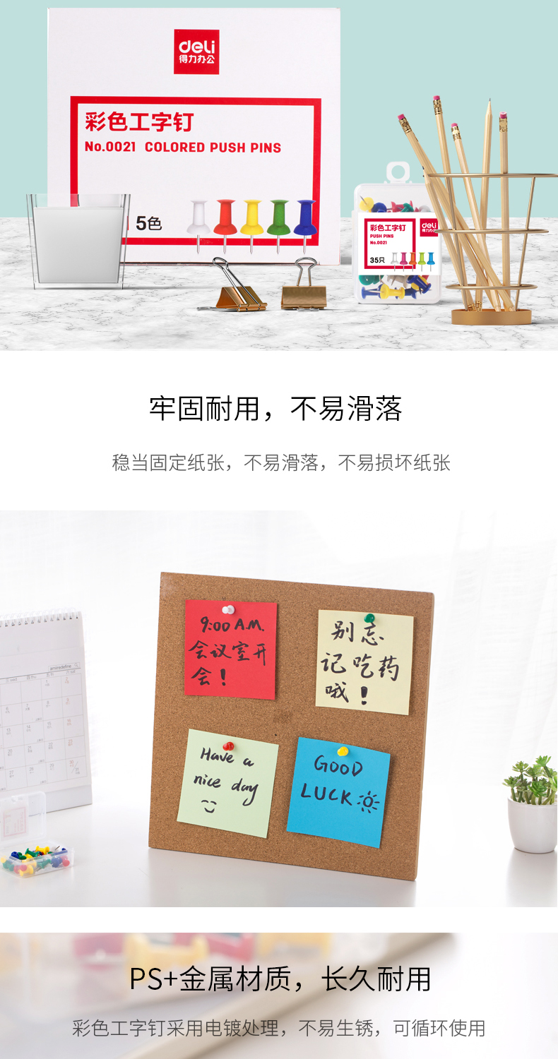 得力(deli) 0021 彩色工字釘圖釘(35枚/盒)10盒/條400盒/箱