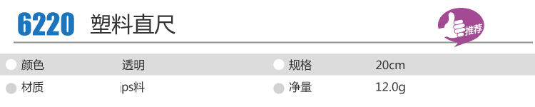 得力(deli) DL-6220 20cm塑料直尺30把/盒600把/箱(100001505 30把/盒 600把/箱