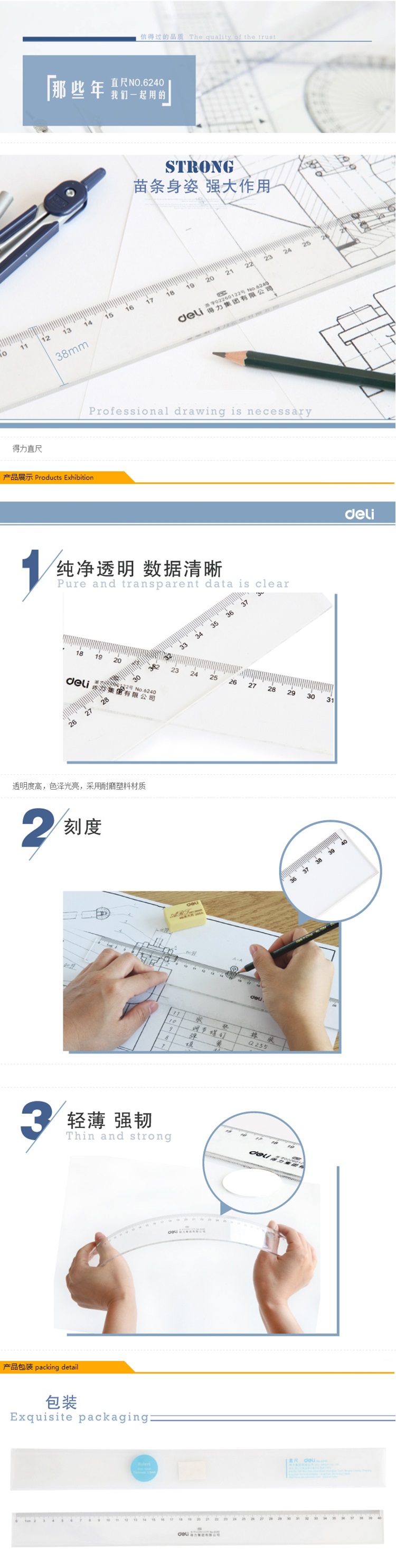 得力(deli) DL-6240 40cm塑料直尺20把/盒