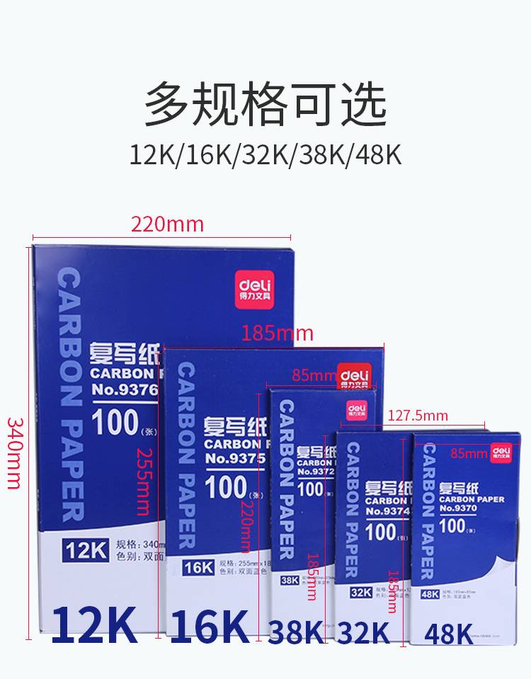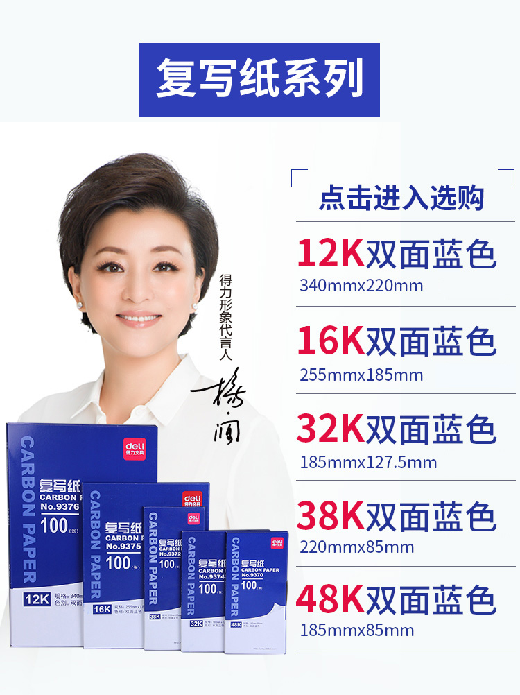 得力(deli) 9372 經(jīng)濟(jì)耐用薄型復(fù)寫紙(藍(lán))(8.5*22cm)-38K(100張/盒)