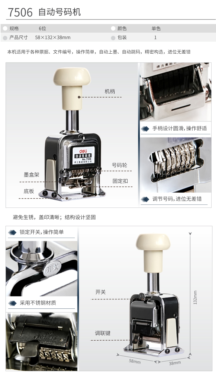 得力(deli) 7506 六位自動(dòng)號(hào)碼機(jī)20個(gè)/箱 20個(gè)/箱