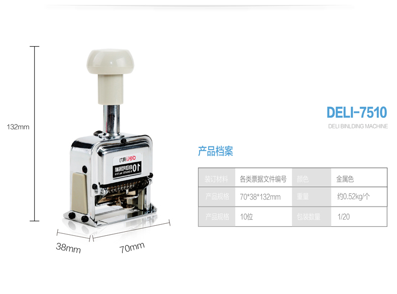 得力(deli) 7510 十位自動號碼機 20個/箱