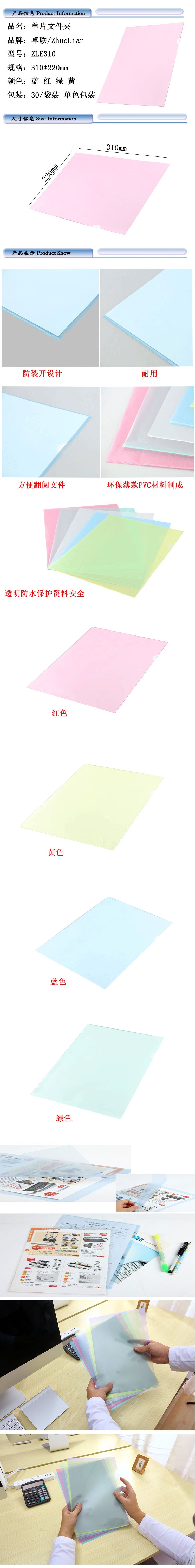 卓聯(lián) ZL-E310 單片夾/兩片夾/兩頁(yè)文件袋(30個(gè)/包)(透明黃)