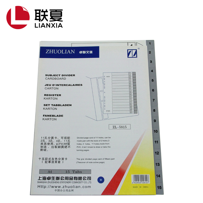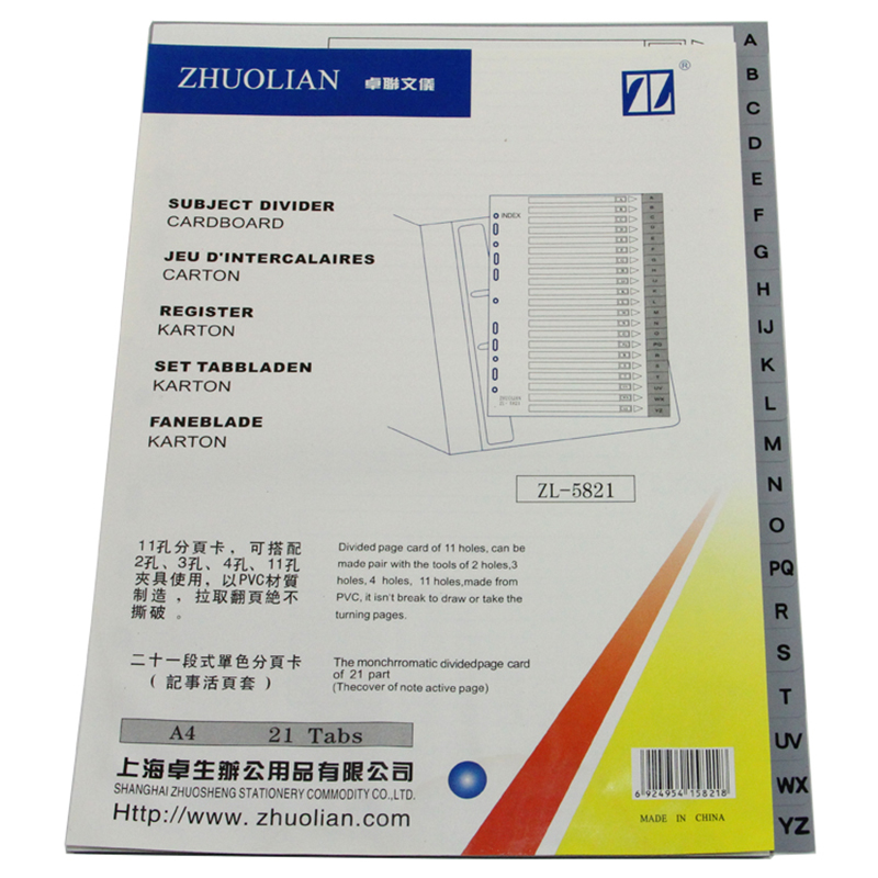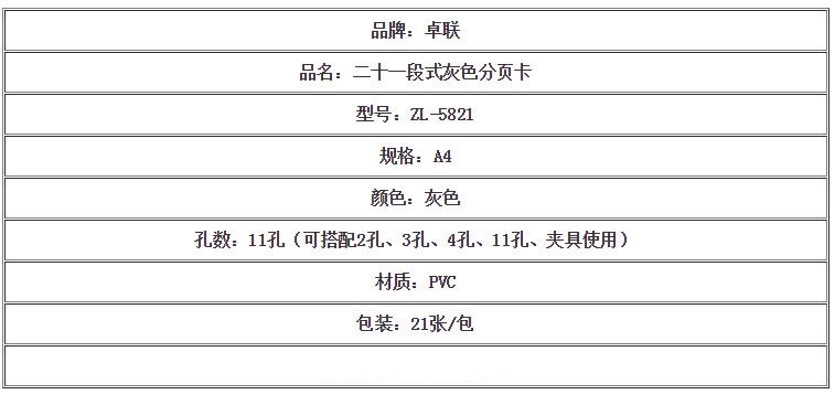 卓聯(lián) ZL5821A 二十一段式PVC分頁紙紙11孔1-21數(shù)字分類紙