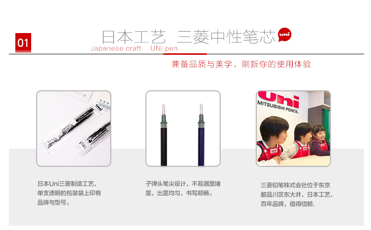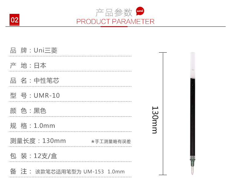 三菱(uni) UMR-10 替芯 (UM-153的配套筆芯) 1.0mm 12支/盒 (藍(lán))