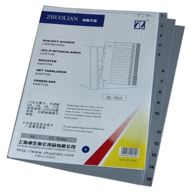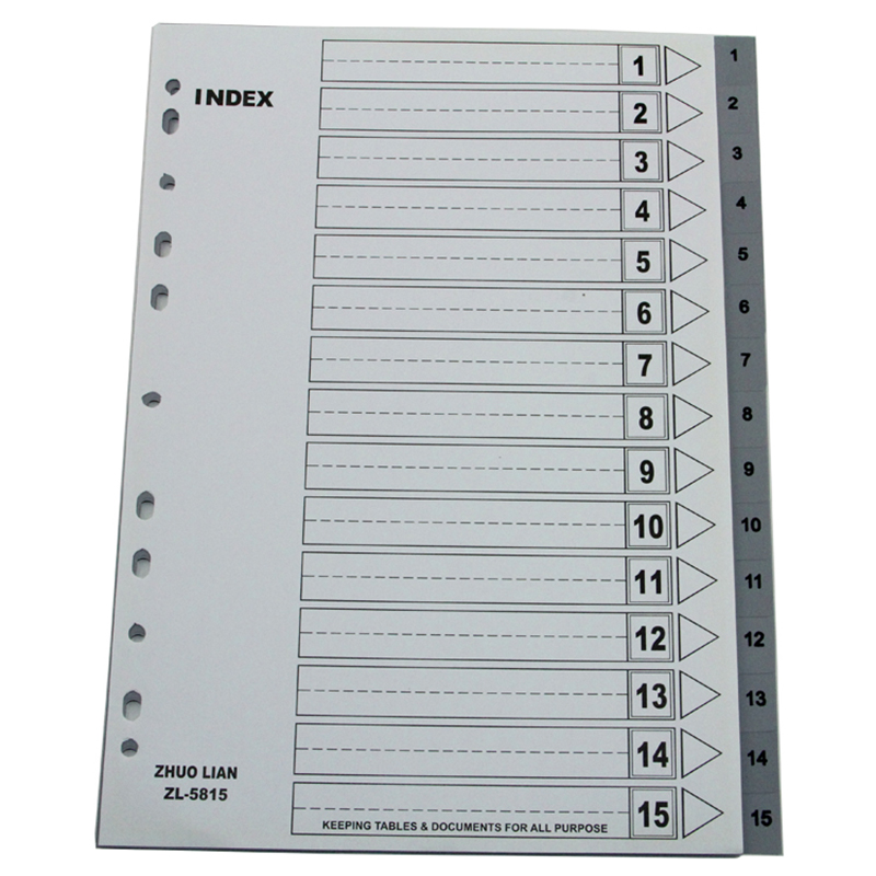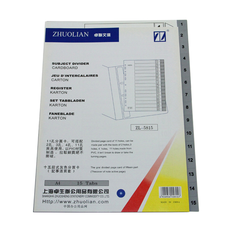 卓聯(lián) ZL5815 十五段式A4/PVC分頁紙紙11孔1-15數(shù)字分類紙