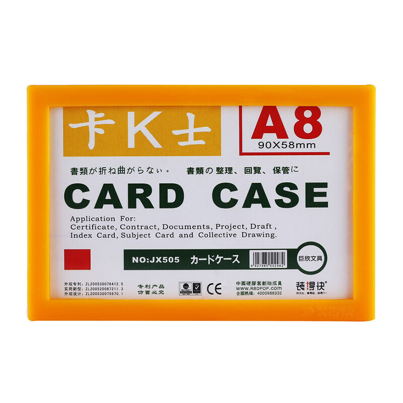 裝得快 JX-505 A8磁性硬膠套卡K士展示板(黃色)
