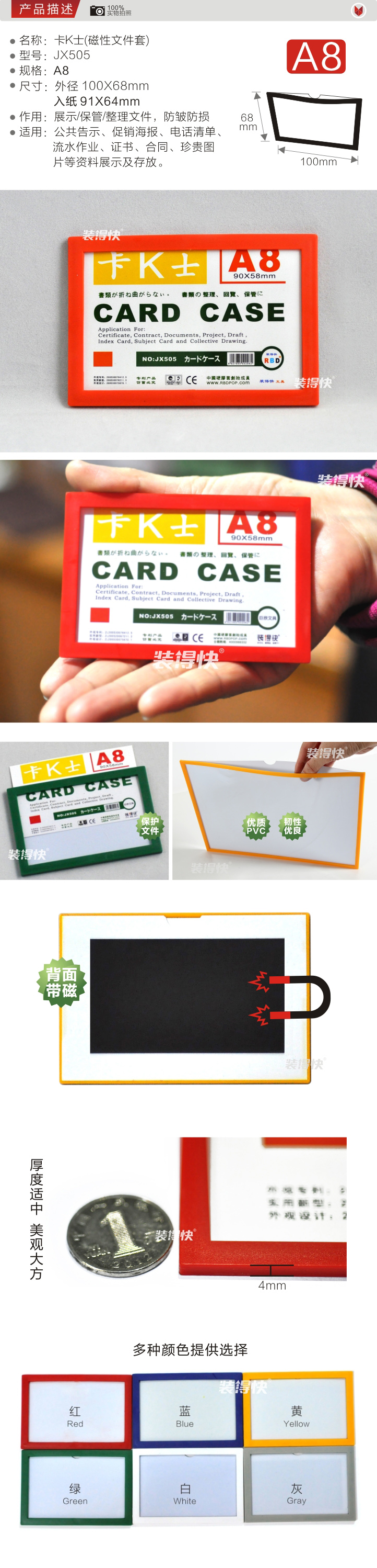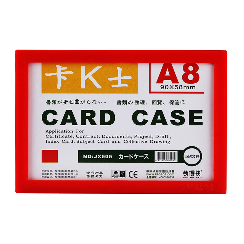 裝得快 JX-505 A8磁性硬膠套 卡K士展示板 (紅色)