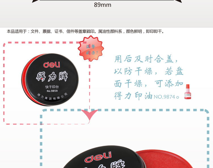 得力(deli) 9859 φ89mm金屬蓋快干秒干印臺(tái)紅色12個(gè)/箱