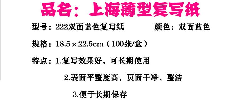 上海(shanghai) #222 雙面藍(lán)色復(fù)寫紙16k(25.5*18.5mm)薄型