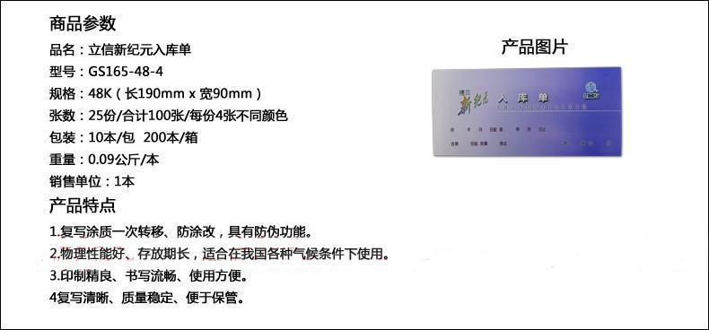 立信 GS165-48-4 四聯(lián)入庫單/拷貝新紀元48開190*88mm