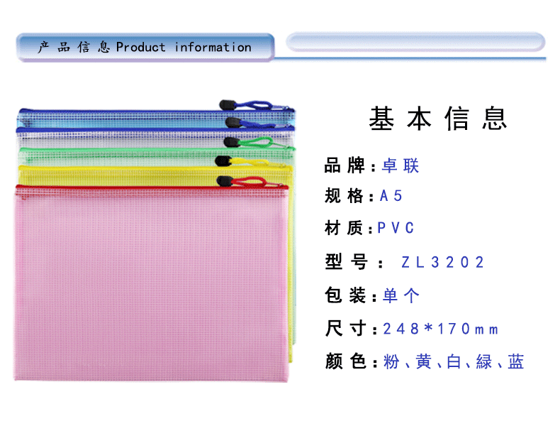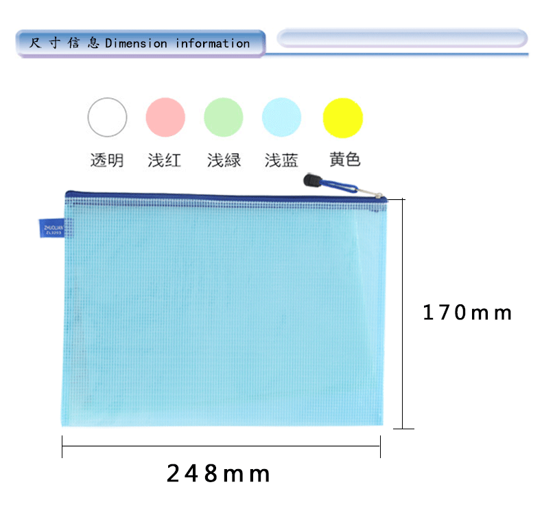 卓聯(lián) ZL3202 A5網(wǎng)格拉邊袋網(wǎng)格拉鏈袋170*248mm(顏色隨機(jī)) 12個/包