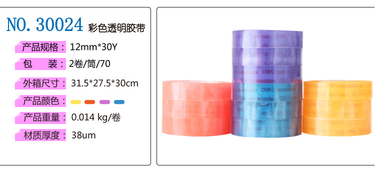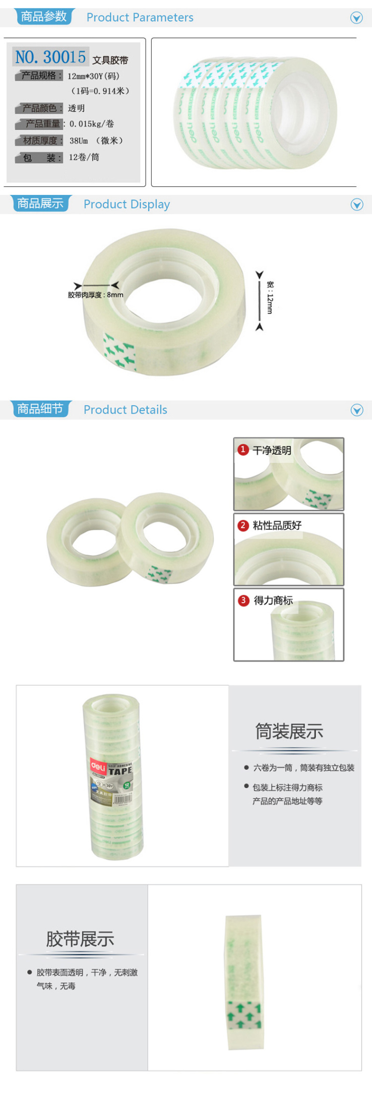 得力(deli) 30015 高透易撕學生文具玻璃膠帶12mm*30y(27.4米)12卷/筒