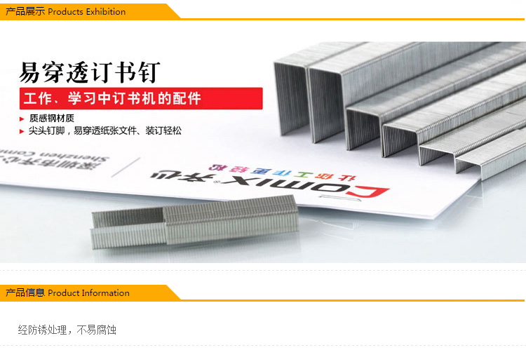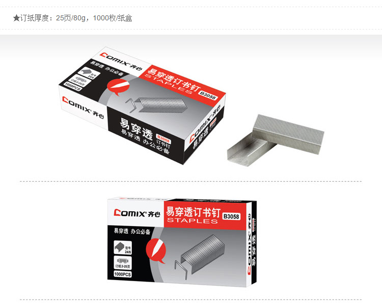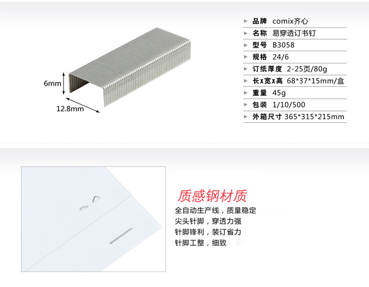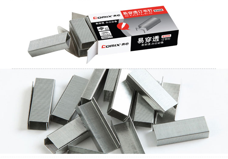 齊心(COMIX) B3058 12#強穿透訂書釘可訂25頁1000枚/盒10盒/條