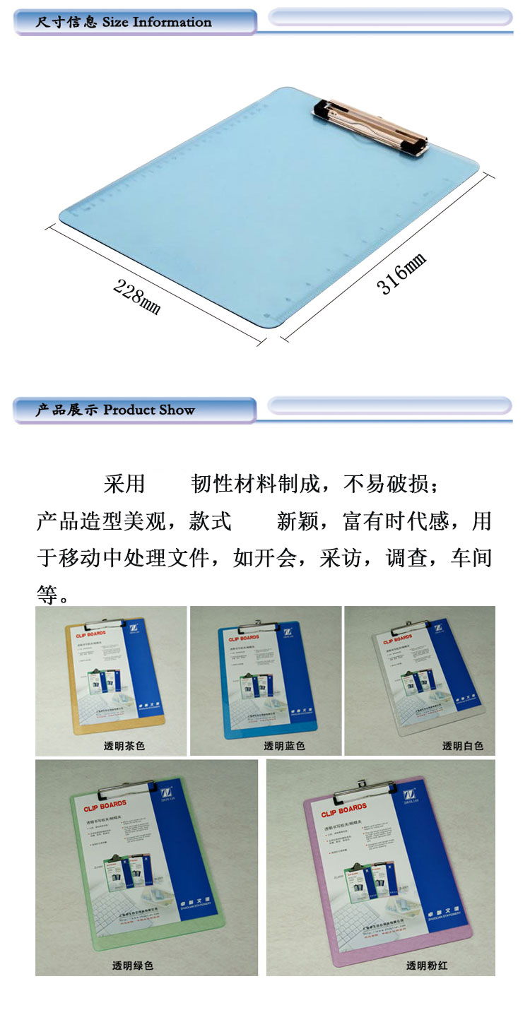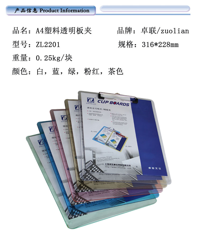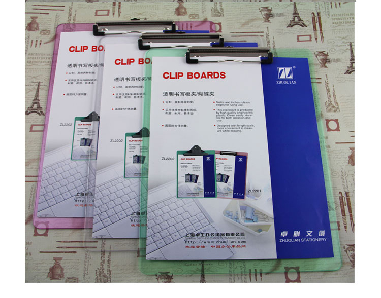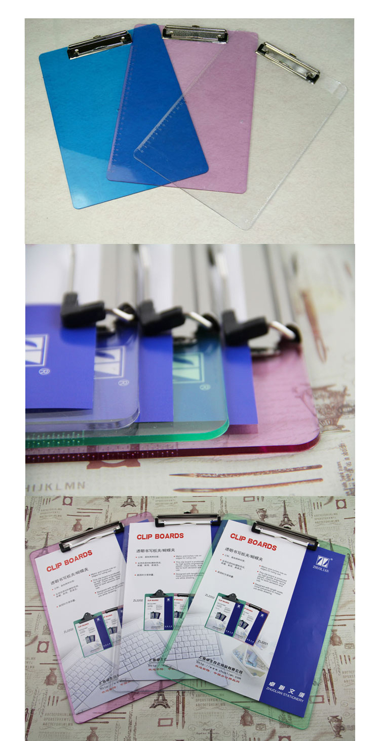 卓聯(lián) ZL2201 A4透明塑料書寫板夾(顏色隨機(jī))