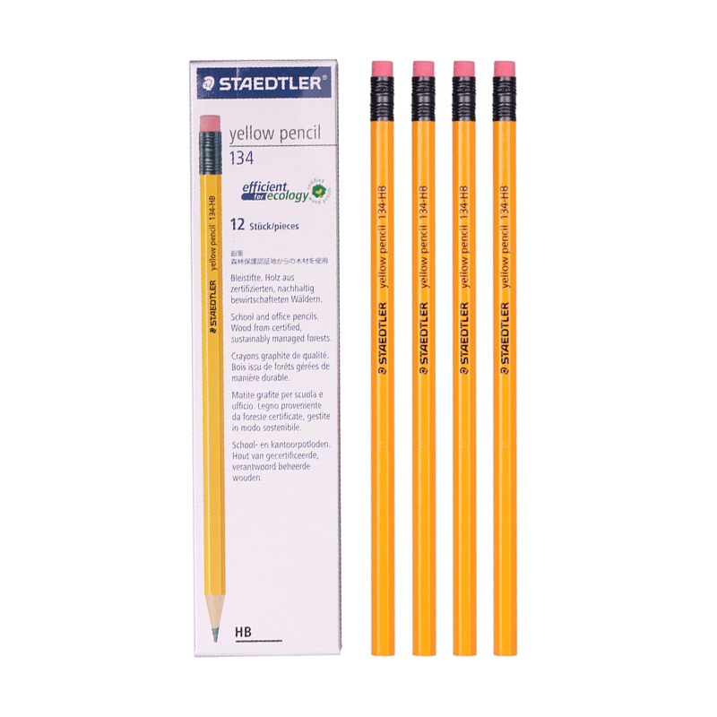 施德樓(Staedtler) #134 鉛筆六角黃桿日常書(shū)寫(xiě)筆帶橡皮頭(134-HB)