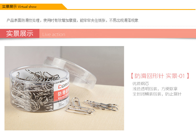 齊心(COMIX) B3508 150枚裝3#防滑紋回形針/曲別針