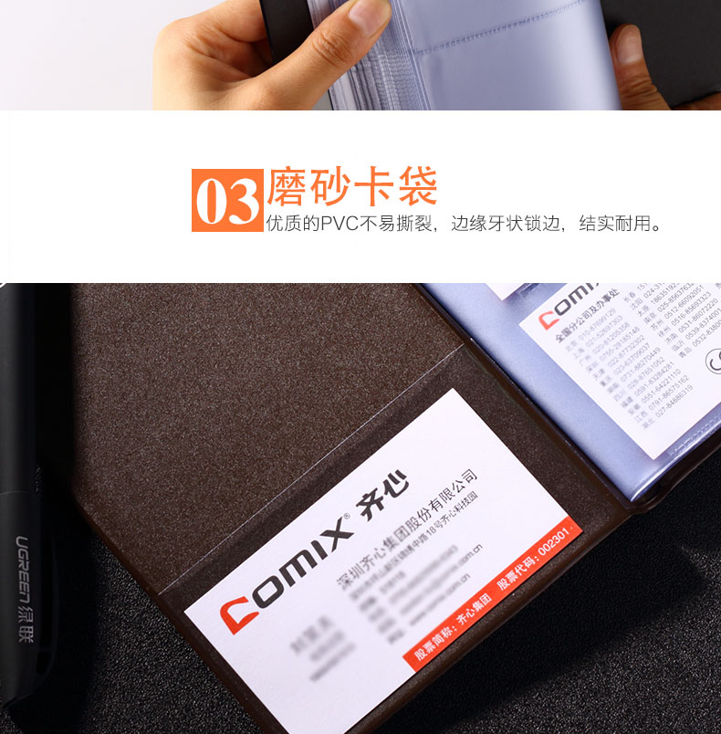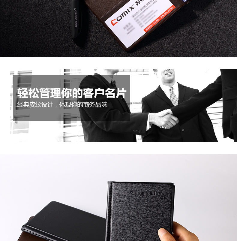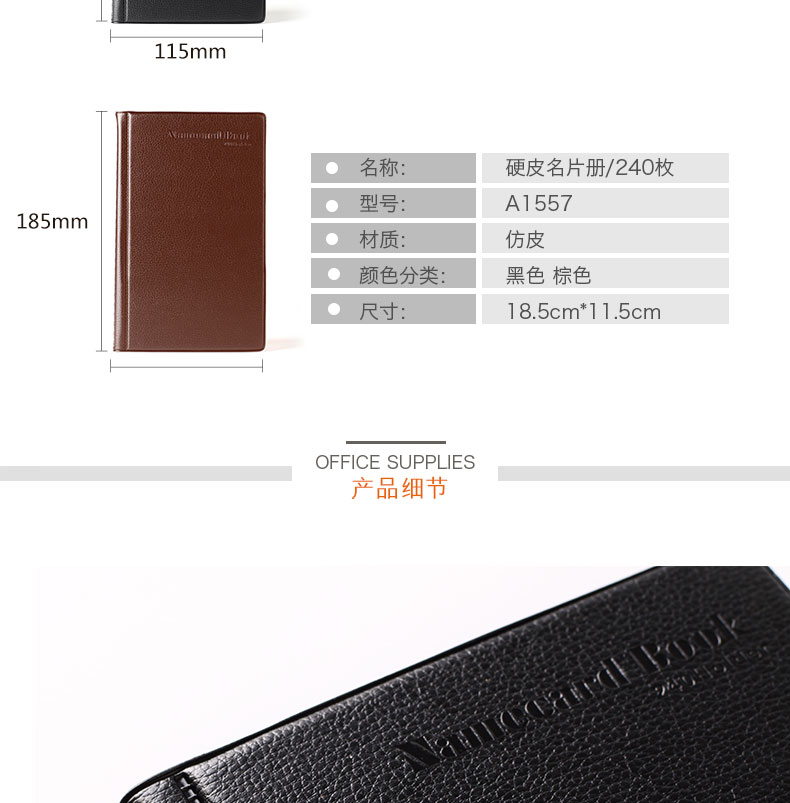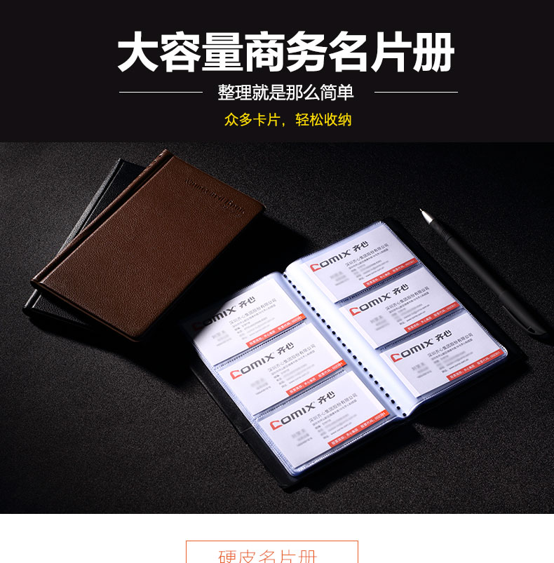 齊心(COMIX) A1556 辦公必備硬皮名片冊(cè) 180張 (棕)