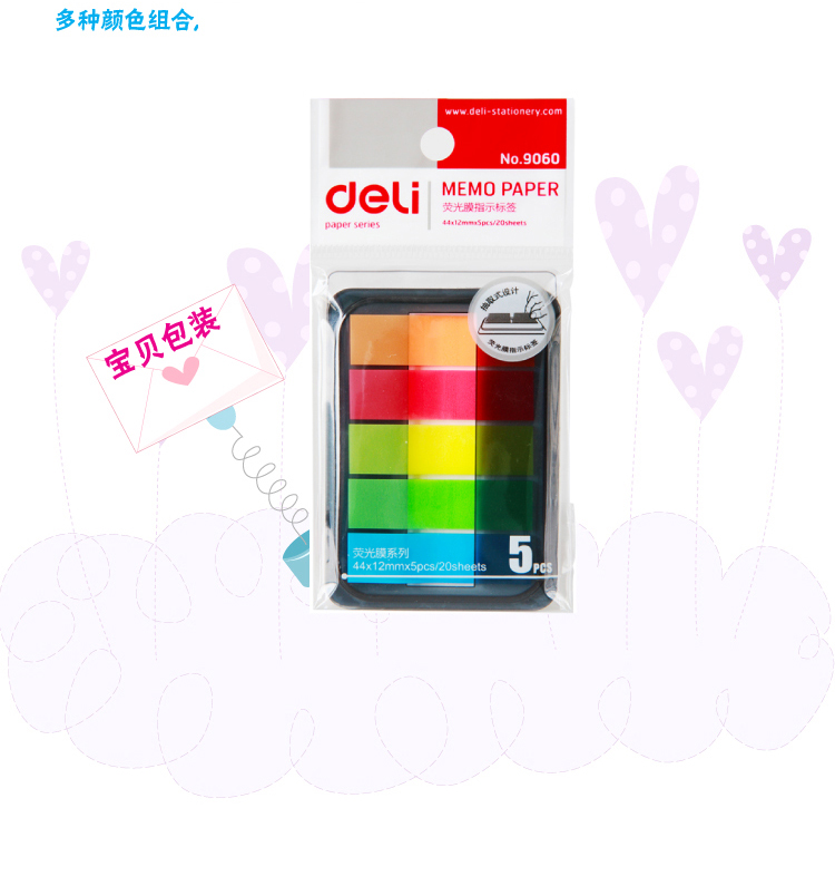 得力(deli) 9060 熒光指示標(biāo)簽/便利貼/報事貼44*12mm24本/包