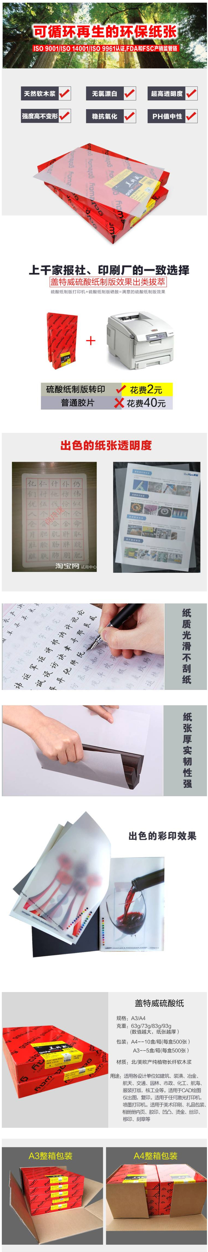 蓋特威(GaiTeWei) A4(297mm*210mm)平裝描圖紙63g/半透明 10盒/箱