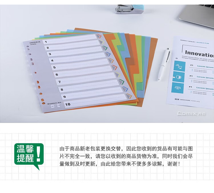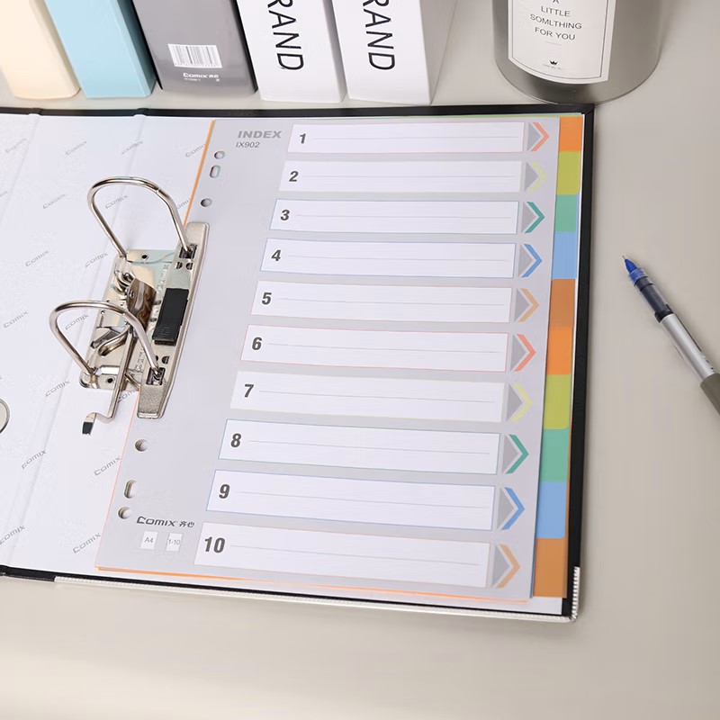 齊心(COMIX) IX902 分類紙 十色索引紙 塑料隔頁(yè)紙 11孔PP彩色10頁(yè)A4分頁(yè)紙