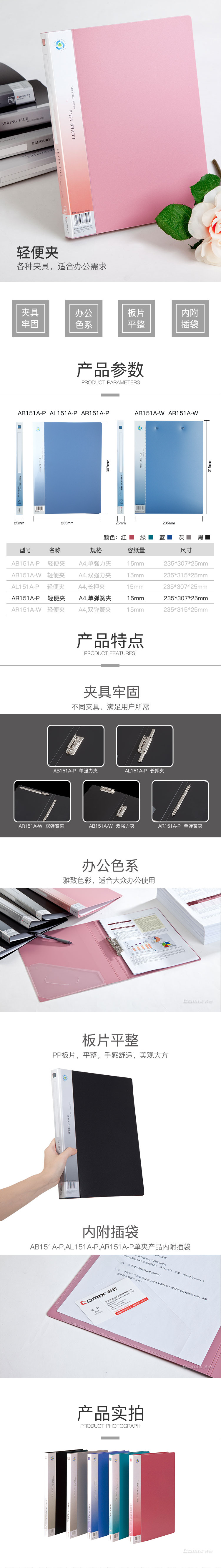 齊心(COMIX) AR151A-P 文件夾/資料夾/單彈簧夾A4(藍色)
