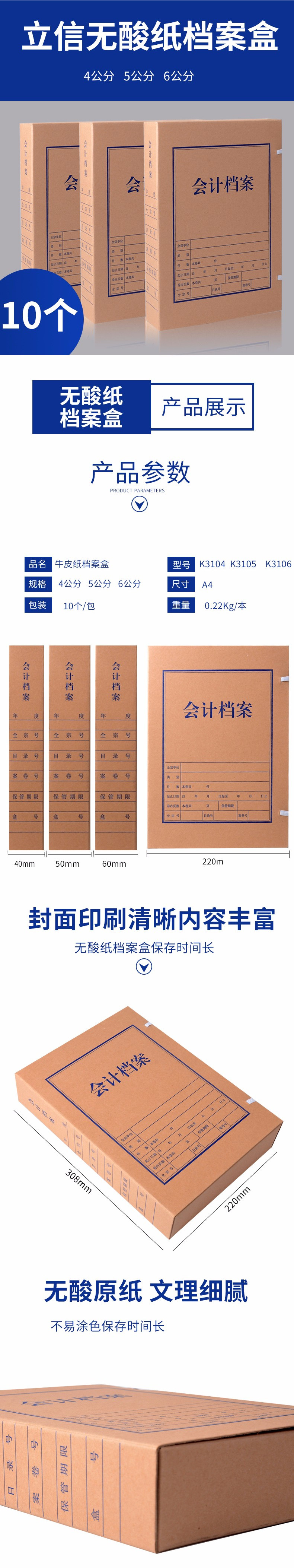 立信 5cm 無(wú)酸紙牛皮紙檔案盒