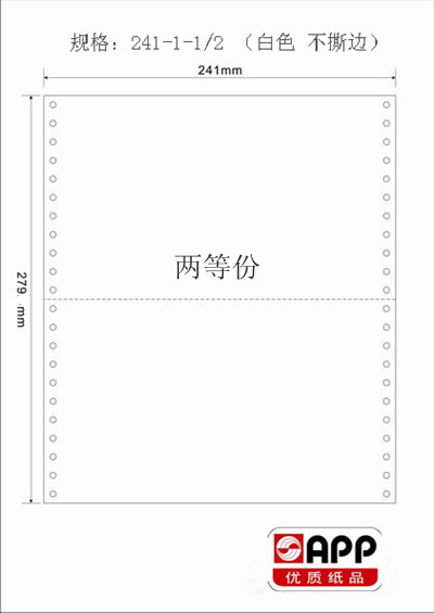 金球(APP) 241-1-1200頁 電腦打印紙 (兩等分不壓線白)
