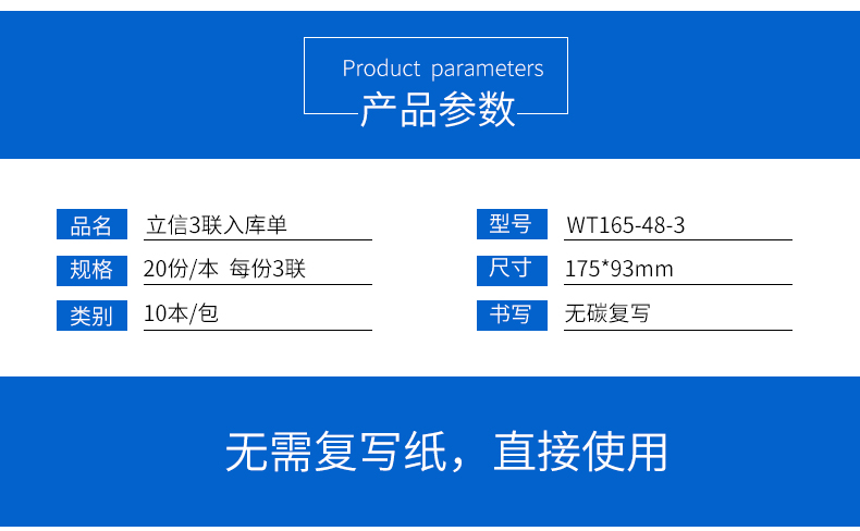 立信 WT165-48-3 三聯(lián)無碳入庫單20份/本