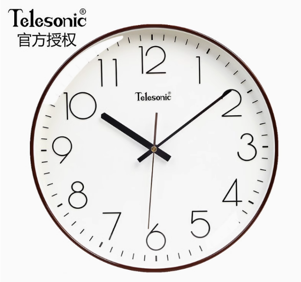 天王星(Telesonic) 14寸靜音掛鐘35cm 咖色白邊