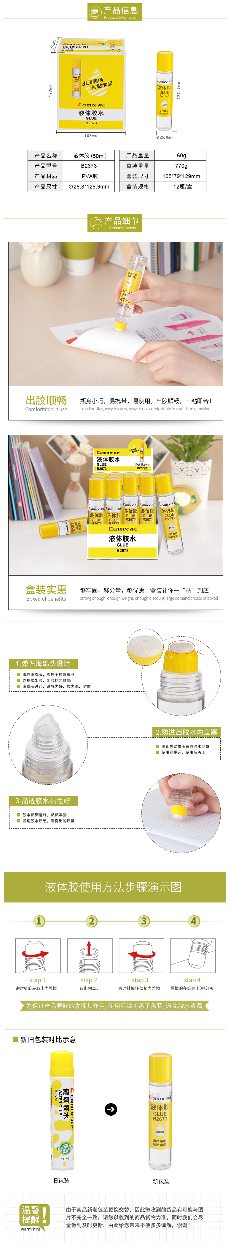 齊心(COMIX) B2673 海綿頭液體膠水50ml