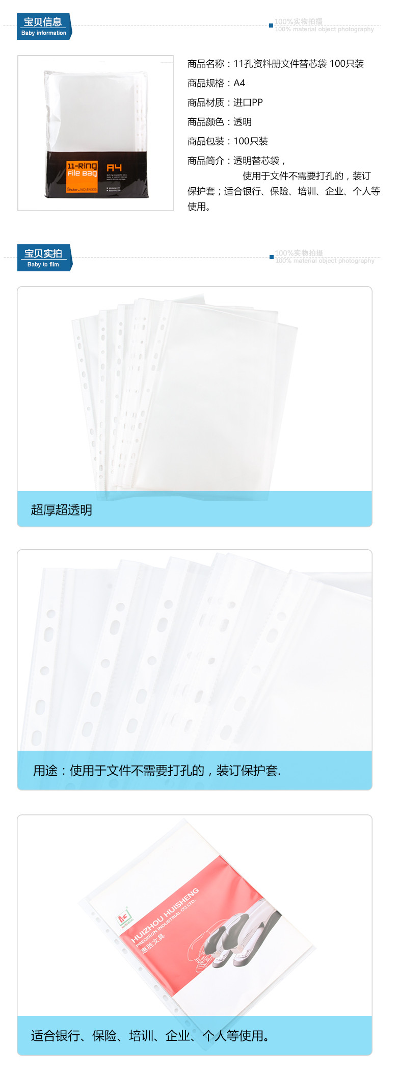 樹(shù)德(Shuter) EH303 活頁(yè)袋11孔文件袋A4100個(gè)裝
