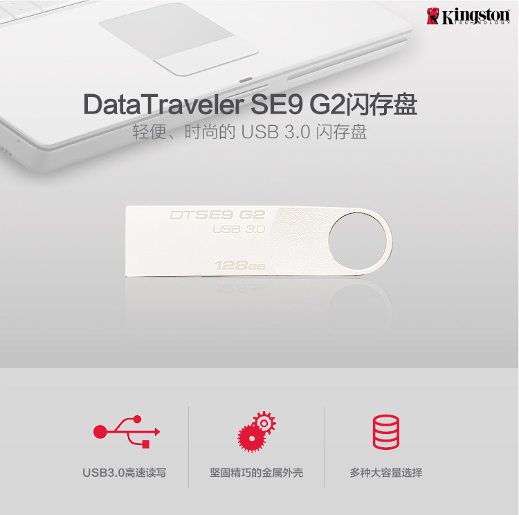金士頓(Kingston) 128GB U盤USB3.0DTSE9G2金屬迷你型車載U盤銀色亮薄讀速100MB/s