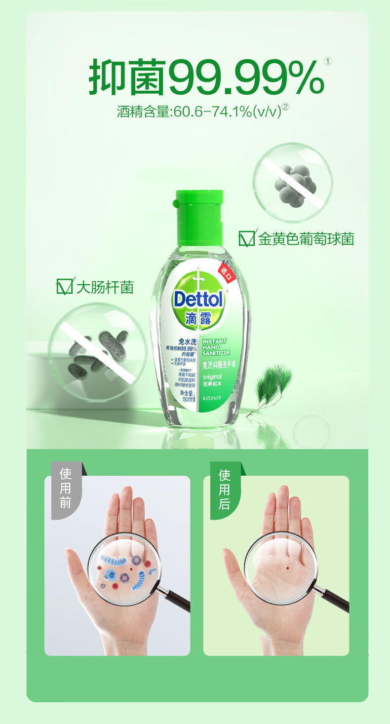 滴露(Dettol) 經(jīng)典松木 免洗抑菌洗手液200ml/瓶免水洗消毒家用裝