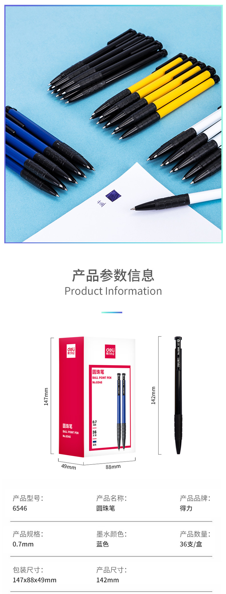得力(deli) 6546 經(jīng)典握手設(shè)計(jì)按動(dòng)圓珠筆原子筆 36支/盒 (藍(lán)色)
