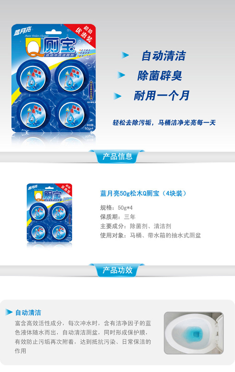 藍(lán)月亮(Bluemoon) Q廁寶/去味潔廁塊(松木香型)50g*4塊裝